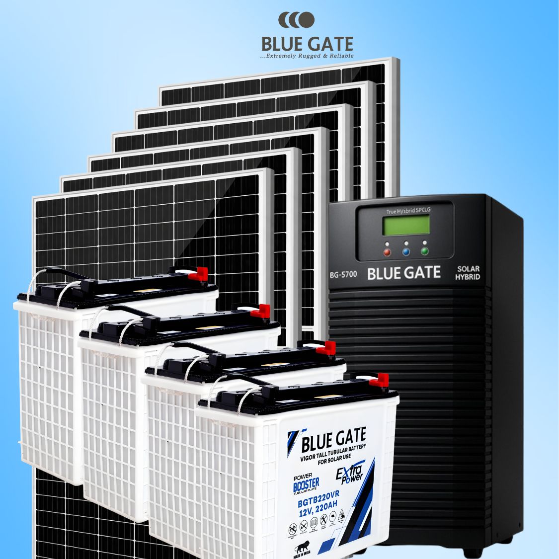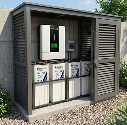The heart of your backup system. Blue Gate batteries are designed for deep discharge and rapid recharge, offering durable energy storage you can rely on.